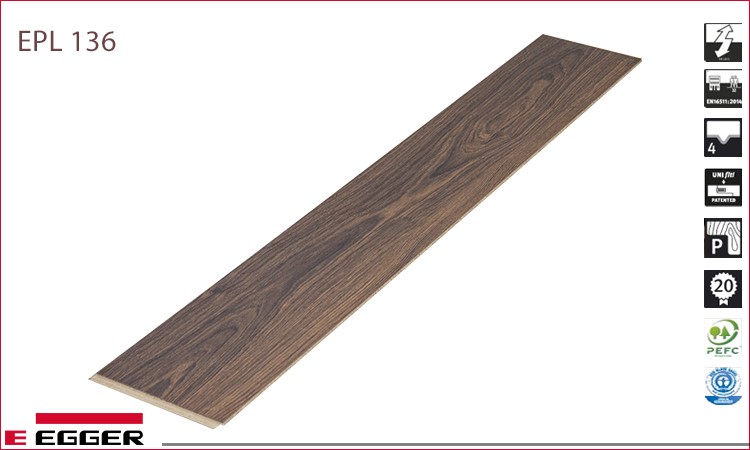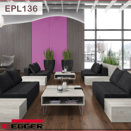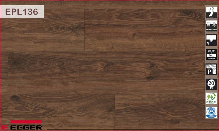 Trong bộ sưu tập Egger 8mm Pro ra mắt năm 2018, có thể nói thiết kế sàn có mã EPL136 là thiết kế gây ấn tượng nhất khi chạm mắt lần đầu tiên. Màu sàn là sắc nâu đỏ nghiêng nâu có một vài vệt đen tạo cảm giác như gỗ cháy. Sự cẩu thả có ý đồ này lại trở thành nghệ thuật mới lạ trong thiết kế màu sàn gỗ. Egger EPL136 sẽ phát huy tối đa công năng và giá trị thẩm mĩ của mình khi kết hợp cùng vật dụng nội thất màu vàng nâu, màu mùn cưa và tường nhà màu xanh rêu, xám tro, vani.